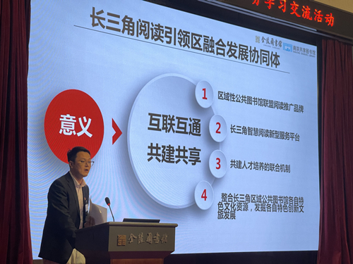 随后,图书借阅部的陈铭主任与大家分享了他参与“十四五”调研考察的所见所得。他介绍了相关图书馆在“十四五”期间的重点任务,对建立好“南京共享图书馆”平台提出了远期的展望。
