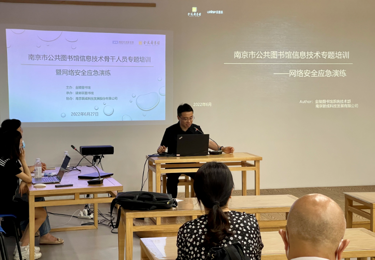 6月27日,金陵图书馆在建邺区图书馆召开了全市公共图书馆信息技术骨干人员专题培训暨网络安全应急演练。本次培训工作是2022年“市区联动、共建共享”工作的内容之一,由金陵图书馆主办,建邺区图书馆承办,南京联成科技发展股份有限公司协办。金陵图书馆副馆长方炜、金图系统技术部全员以及来自全市13个区图书馆的分管馆长与技术骨干等30余人参加了此次培训。