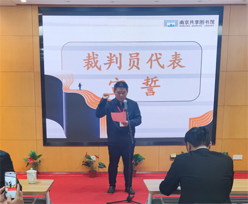随后,来自江北新区图书馆的骆勇作为参赛选手代表进行宣誓,晓庄学院的杨明作为裁判员代表进行宣誓。在方炜副馆长重申决赛规则与考场纪律后,技能竞赛决赛正式开始。