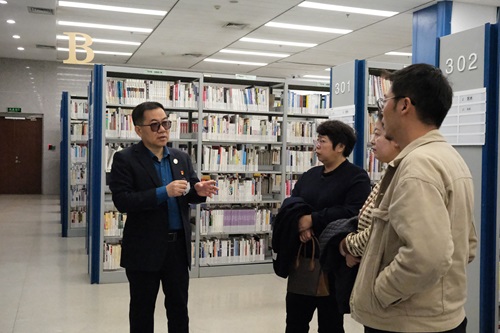 为聚焦铸牢中华民族共同体意识主线,以高度责任感和使命感推动对口援疆工作更高质量开展,在中国式现代化进程中更好建设美丽新疆,11月14日下午,伊宁市文体广旅局文旅科干部景澄鹤、伊宁市图书馆馆长龚丽娟等一行11人来访我馆考察调研,金陵图书馆馆长焦翔、宣传营销部主任马骥陪同参观,副馆长李海燕、少儿工作部副主任周军、办公室副主任孙雨参与后续座谈交流。