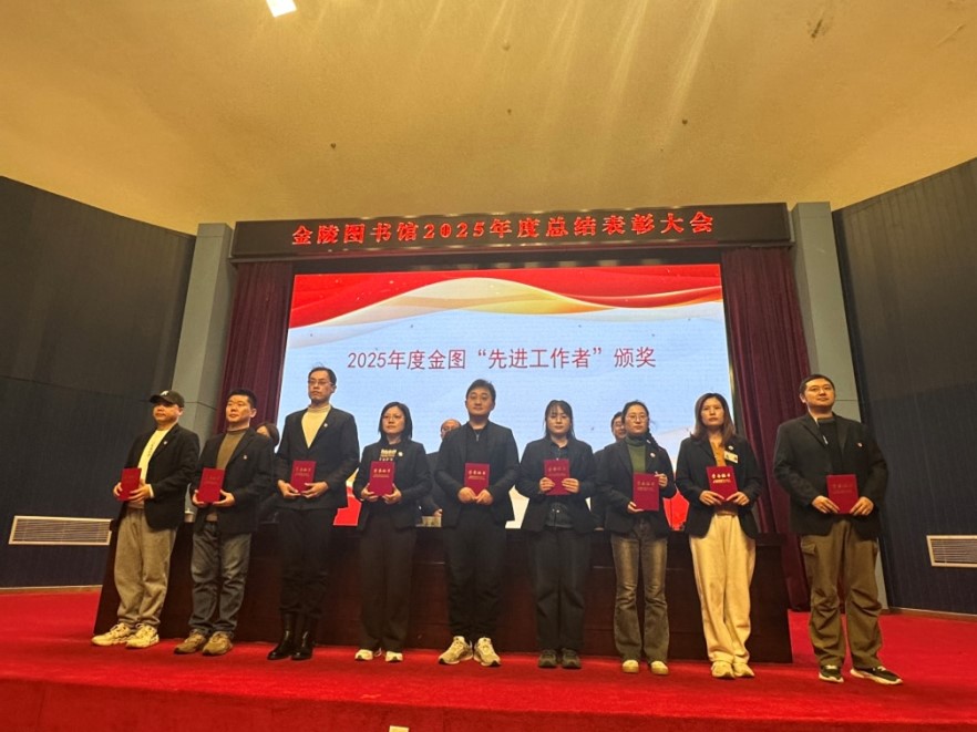 大会伊始,副馆长李海燕宣读了金陵图书馆2025年度“金图之星”名单和“先进工作者”名单。伴随着奋进的旋律,馆领导分别向“金图之星”和“先进工作者”颁发荣誉证书并合影留念。金图今日的蓬勃发展,离不开每一位兢兢业业、努力奋斗的职工,他们立足本职、实干笃行,是全体金图人前进路上的榜样。