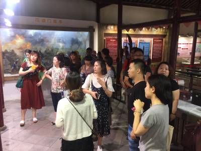 西舍村是一个小山村,走进村子一眼看到两幅巨大的壁画——“红色情怀、红色西舍”。据当地文明办有关负责人介绍,西舍村曾是溧高地区抗日游击根据地的大本营和策源地,1944年溧高县抗日民主政府在此成立,县委、县政府机关则设立在西舍村大祠堂内。时过境迁,如今的大祠堂已经成为了传承革命精神的红色教育展厅,一幅幅展板和照片,一件件模型和实物,真实重现了那段硝烟弥漫的峥嵘岁月。金陵图书馆的党员们在参观过程中仔细聆听了讲解员的叙述,认真观看了关于西舍村历史的影像资料短片,不仅领略到革命先烈的英勇事迹,同时也体会到老一辈人共产党员坚定的共产主义信仰。