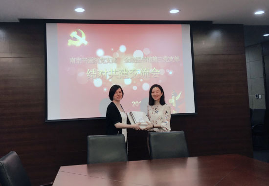 为加强党的基层组织建设,丰富党建工作内涵,形成资源共享、优势互补、互相学习、共同发展的基层党建工作格局,激发基层党组织的生机与活力,6月1日下午,金陵图书馆党总支副书记尹士亮、组织委员兼纪检委员方炜、第三党支部书记李海燕带领第三党支部党员代表来到南京书画院,与书画院党支部开展共建交流活动。