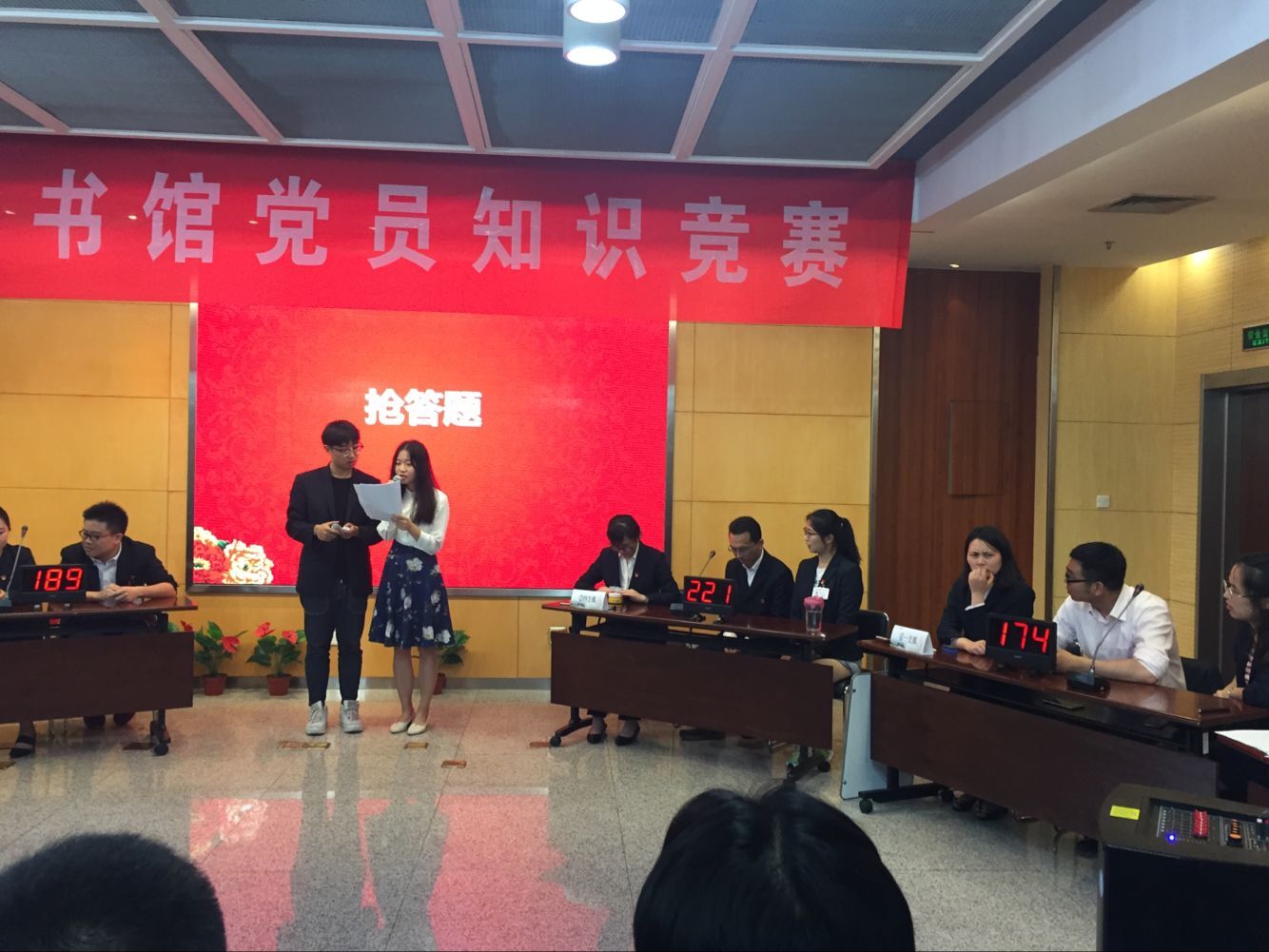 6月28日下午,金陵图书馆党员知识竞赛复赛成功举办。第一支部的李孝滢、仓健、赵晴等三名党员组成代表队,参加了现场答题。王承冠、管婷婷、李轩等党员作为后援团,及时在场外给予参赛选手支持。