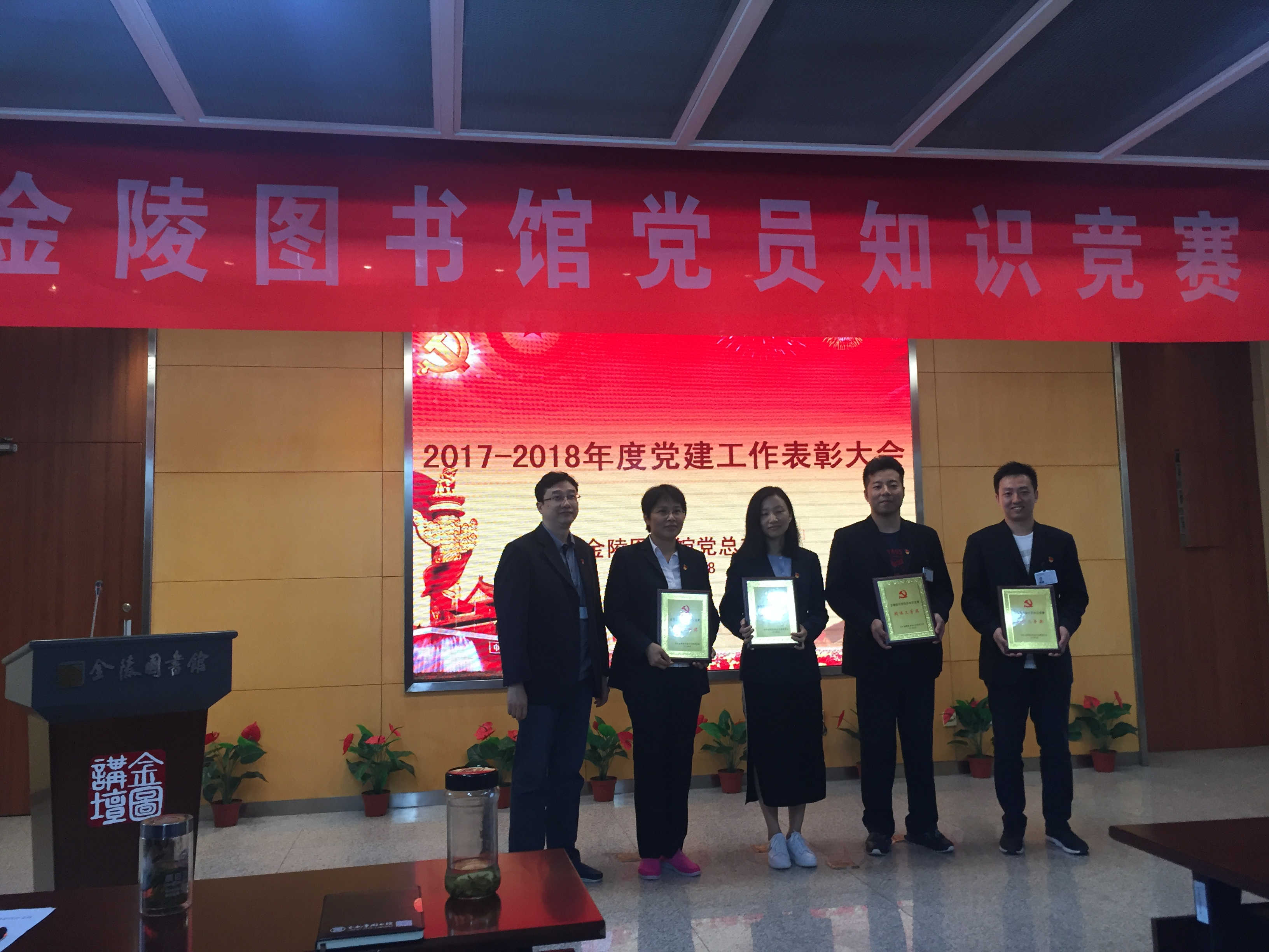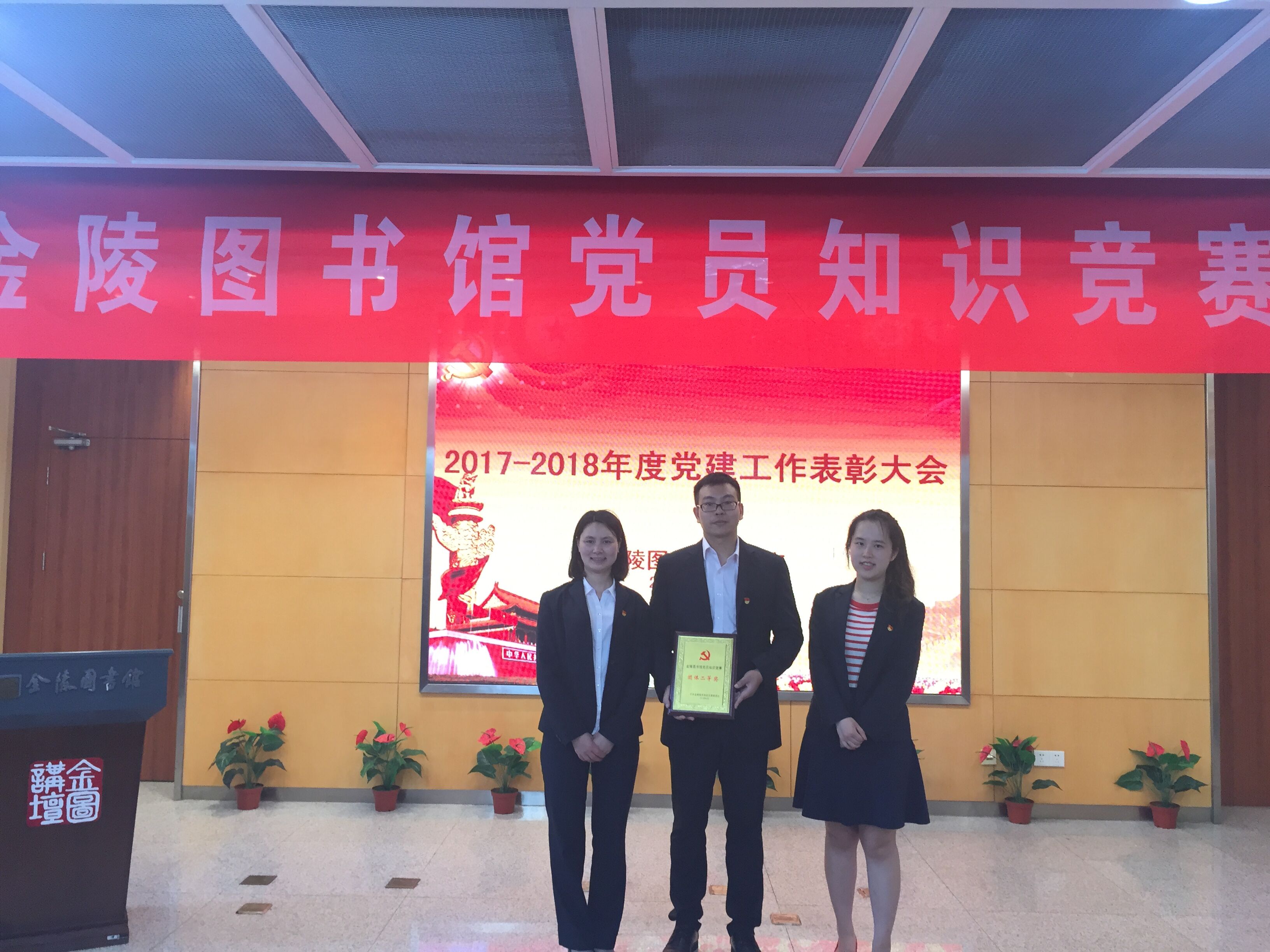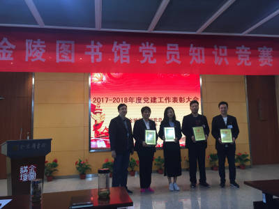 赛后,金陵图书馆召开了党总支2017-2018年度党建工作表彰大会。第一支部的赵晴同志获金陵图书馆2017-2018年度总支优秀共产党员,缪勤、赵晴、朱丽丽荣获金陵图书馆2017-2018年度支部优秀共产党员。在金陵图书馆2018年党员知识竞赛中,第一支部再创佳绩,李孝滢获个人一等奖,李轩、王承冠、管婷婷获个人二等奖,孙振强、何向阳、张俊、缪勤、仓健获个人三等奖。