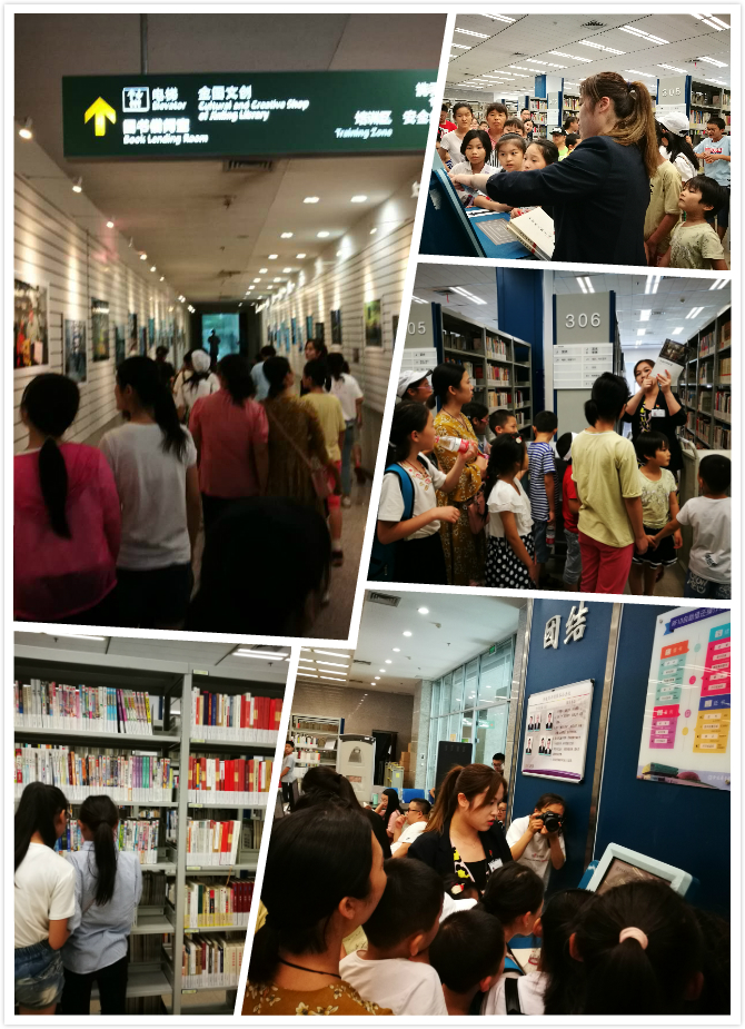 32位来自不同地区、不同年龄段的小读者先在支部党员俞荣荣同志的带领下参观了金陵图书馆,卜璐、吴迪、曹宁欣三位同志陪同讲解。孩子们排成两列队伍,从会展区开始,从下往上依次参观了金图的开放阅览区域。他们中好多人是第一次走进图书馆,造型独特、寓意丰富的“水滴”设计;藏书丰富、宽敞明亮的图书借阅室;种类齐全、排列整齐的报刊阅览室……都给小读者们留下了深刻的印象。期间,俞荣荣同志还为孩子们演示了如何借阅图书、如何办理电子证、如何给图书消毒等一系列操作,小读者们纷纷围在机器旁边,仔细学习聆听。此外艺术长廊正在展出《阅读之美》主题图片展也吸引了孩子们的目光,图片展示了摄影师在世界各地拍摄的正在阅读中的人,孩子们久久驻足观看,感受阅读的静美。
