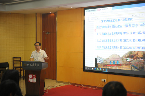 最后,围绕“不忘初心、牢记使命”主题教育,总支副书记尹士亮同志、书记焦翔同志先后带领党员同志开展集中学习。总支副书记尹士亮同志从理论学习和调研工作两个方面进行主题教育党课学习。一方面,理论学习该怎么学:一要带着问题学,关注问题靶向,增强主观能动性;二要联系实际学,因时制宜,学出实效;三要深入思考学,加强“笔力”以固化思考成果,使理论学习实现螺旋式的上升。另一方面,调研工作要怎么做:调研的目的是发现问题,这就要求我们在调研的过程中体现求真务实的态度,注意防止“低级红、高级黑”现象,明确区别“形式”和“形式主义”,将高标准、严要求、抓实在、见实效贯穿始终。总支书记焦翔同志以“传承红色基因,坚定理想信念”为主题,介绍了全市宣传文化干部赴延安培训的相关情况。一开始,他就用激昂的语言、质朴的文字、详实的图片将“延安精神”具象化,通过讲述从党中央在延安时期的发展历史,到光荣伟大的延安十三年铸造的辉煌,到党的历史丰碑——伟大的延安精神等,让参会的党员同志们震撼于革命先辈的崇高精神,享受了一场红色的心灵洗礼。紧接着,焦书记利用一帧帧照片和一段段视频,展示了延安市图书馆、实境课堂、南泥湾、梁家河等场景。结束时,他要求大家立足岗位实际加强学习,做到学以致用、融会贯通,强化责任意识、担当意识,不断开拓创新、锐意进取。
