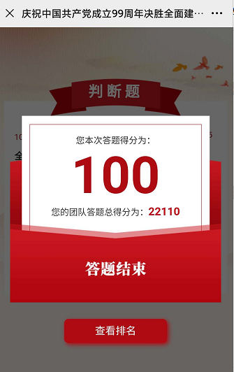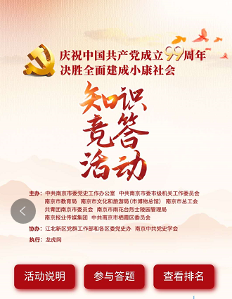 中国共产党创建于1921年,在2020年7月1日党的99岁生日之际,金陵图书馆第一党支部依托中共南京市委党史工作办公室、中国南京市委机关工作委员会、南京市教育局等联合主办的 “庆祝中国共产党成立99周年决胜全面建成小康社会知识竞答” 开展相关于主题党日活动,集中时间段以党小组为单位,组织党员同志参与线上知识竞答。