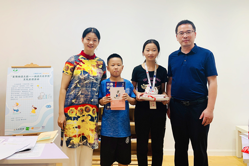 在主题诵读环节,孩子们与志愿者大姐姐一起,对《耗子大爷起晚了》《城南旧事》《快乐王子》《少年的荣耀》《银河铁道之夜》《芒果街上的小屋》六部经典儿童文学作品中的精彩片段进行了中英文朗诵,在诵读中领略到了不同文学读物的魅力。