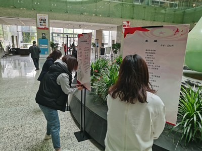 4月15日上午,金陵图书馆第四党支部办公室党小组的党员在一楼大厅集合,并顺利完成此次展览的布展工作。本次主题展览展出时间为4月16日至5月6日,共选取19篇优秀佳作以“诗歌为媒,话百年征程”,回顾了中国共产党百年来的峥嵘岁月,激励着新时代共产党人砥砺奋进、勇往直前,走好中华民族伟大复兴之路。