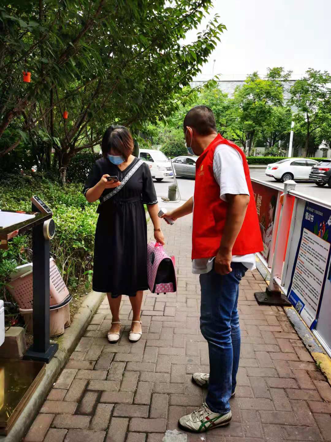 根据上级党委的安排,金图党员志愿服务队的第一站是秦淮区朝天宫街道的七家湾社区交通卡口。8月15-21日金图三支部全体18名党员参加了的志愿服务队,从早上8点到晚上10点,对进出交通卡口的人员有序进行体温检测和健康码查验工作。8月23日开始,第二站金图党员志愿者们来到了乐山路社区,早晨9点到11点,下午3点到5点两个时间段,协助金马郦城物业对进出小区的人员有序进行体温检测和健康码查验工作,不管是烈日炎炎还是狂风暴雨,党员志愿者们始终坚守岗位。切实维护防控秩序、积极开展防疫宣传。金图“红马甲”是一直是活跃在路口最动人的色彩。