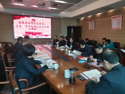 最后,尹士亮书记带领大家集体开展作风建设专题研究,他提出今年金图的作风建设突出强调三个关键词:改会风、增效能、强监管,主要针对目前我们在作风建设领域存在的三类突出问题,分别面向图书馆的馆领导、中层、所有普通党员三个不同层次的群体,进一步加强图书馆作风建设。