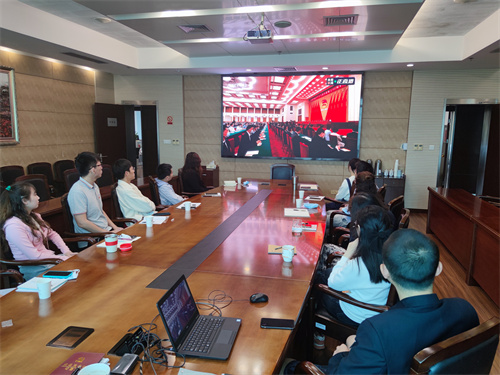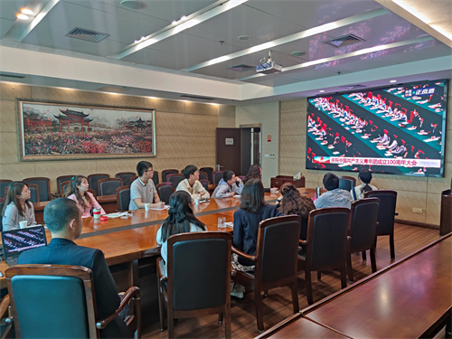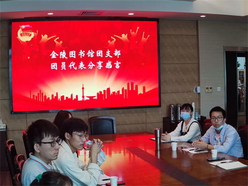 5月10日上午10点,庆祝中国共产主义青年团成立100周年大会在北京人民大会堂隆重举行,中共中央总书记习近平出席大会并发表重要讲话。金陵图书馆团支部召开团员大会,组织全体团员收看庆祝中国共产主义青年团成立100周年大会实况。团员大会由团支部书记胡宁涛同志主持。