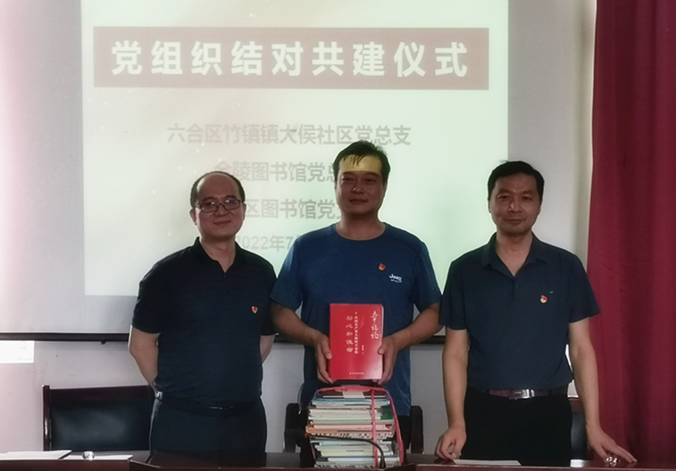 首先,金陵图书馆党总支与六合区竹镇镇大侯社区党总支、六合区图书馆党支部共同举办党组织结对共建仪式,签署《党组织结对共建协议书》。协议三方将秉承“资源共享、优势互补、注重实效”的原则,实现党建工作与文化事业发展良性互动,推动公共文化优质资源延伸供给,助力乡村文化振兴。