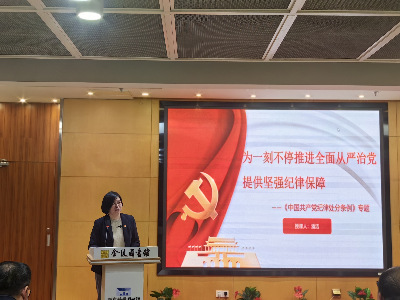 会议的最后一项议程是集中开展全面从严治党专题党课及法治建设专题学习。纪检委员潘洁以“为一刻不停推进全面从严治党提供坚强纪律保障”为主题上全面从严治党专题党课,带领大家学习了最新修订的《中国共产党纪律处分条例》等相关内容,教育引导广大党员干部要不断增强纪律意识、规矩意识,用党章党规党纪约束自己的一言一行,知敬畏、存戒惧、守底线。