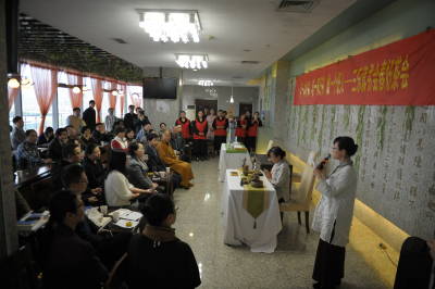 沙龙的第三个主题是“做一个好人”。清凉山寺理海法师在开讲之前轻轻地敲了三下铁钵,帮助大家平静心情,调理气息。理海法师表示,做人做事首先要学会“静心”,他告诉大家,今后无论是在学习还是工作中,学会深呼吸,让自己的心境平和下来,这样有助于思考、有助于提高做事效率。接下来,他提出,人的最大的烦恼就在于“需要的不多,想要的太多”,他希望大家能减少对物质的需求,更多的追求精神上的提升,比如读书、学习,同时他也提倡适当的慢生活,有空品茶赏景就是一种上佳的生活方式。最后,理海法师表示:“很高兴与大家在此结缘,祝愿各位身体健康,万事如意。”