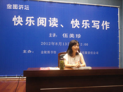 “阅读不带功利性,让孩子从享受纯粹的阅读乐趣开始,进入文学的世界”。8月13日下午,被称为“阳光姐姐”的安徽大学文学院、著名儿童文学作家、少儿阅读推广人伍美珍做客“金图讲坛”,为喜爱她的小朋友和家长做了一场题为“快乐阅读 快乐写作”的讲座。