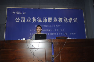 9月22日上午,金图讲坛邀请到了南京市工商局注册分局副局长徐宁与南京李安祥律师事务所的李安祥律师做客金陵图书馆,开展了“公司业务律师职业技能培训”的精彩讲座。