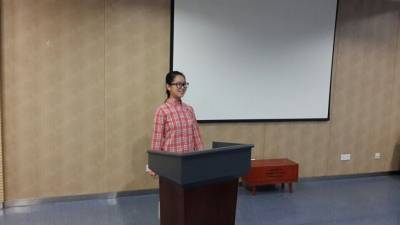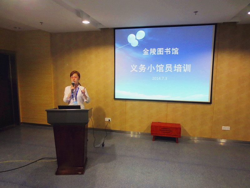 培训后半段,由上期优秀小馆员代表南京外国语学校的孟琦融同学做了交流发言,和大家分享了她在做小馆员时的心得体会。
