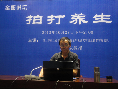 随着人民生活水平的不断提高,人们自我保健意识和能力也在不断地增强,追求各种健康之路和方法已经成为一种需求,经络拍打是众多方法中简单易学、全面而有效的养生保健法。10月27日下午,九三学社江苏省委委员、南京中医药大学信息技术学院院长、中医养生康复学专业博士生导师王旭东教授为大家做了“拍打养生”的讲座。