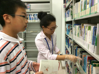 在李瑞文老师的带领和分配下,9名学生领到了各自的片区。经过图书借阅部工作人员认真细致的讲解,短短一下午的时间,这些初一的孩子们就能够准确、迅速地完成各自的任务,同时也学会了图书分类的方法和基本操作流程。