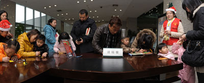 圣诞树活动在金陵图书馆还在继续进行,它不仅是读者和读者、家长和孩子之间的互动,还是图书馆和读者之间的交流,在为读者服务的过程中,将图书馆的人文关怀、读书理念用语言用微笑传递到读者的心中,拉近读者与图书馆的距离,让图书馆不仅只是读者看书的地方,更是过节、休闲、放松、娱乐的生活场所,营造一派欢乐的节日气氛的同时,更赋予一片浓浓的书香情怀。