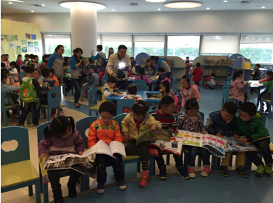 参观过程中,工作人员分别带领小朋友们参观了办证处、报纸阅览室、图书借阅室、试听文献室和少儿借阅室。大班、中班的小朋友对电子阅报机、自助借还机产生了浓厚兴趣,跃跃欲试,纷纷上前操作;小班的小朋友对书车、踏凳也充满了好奇,认真地看着现场工作的叔叔阿姨是如何运用这些工具的。在少儿活动室,小朋友们都被图书吸引了,迫不及待地挑选着图书,安静地阅读起来。