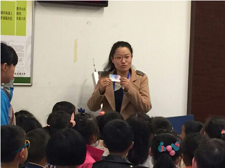 (工作人员讲解图书馆读者证办理程序)