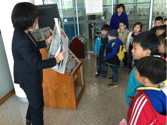 工作人员带领小朋友们先后参观了办证处、报纸阅览室、图书借阅室、试听文献室和少儿借阅室。在办证处,孩子们观摩了办证流程,并仔细听取了少儿借阅证的办证方法。在报纸阅览室,工作人员引导孩子们了解了报纸的取阅、存放。小朋友们对电子阅报机产生了浓厚的兴趣,迫不及待地一一上手操作,选报纸、翻页、放大……还有男孩子自主点击了航舰图片,引起一片赞叹。