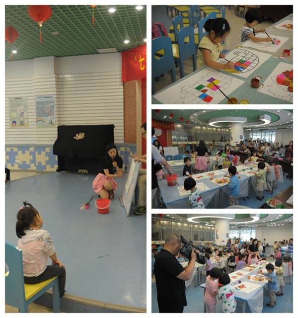 第二阶段是艺术体验:水粉创作。小朋友们在故事分享结束之后,用着工作人员精心准备的材料认真仔细的开始创作水粉画,主题与绘本故事分享的内容相互应,画花格子大象艾玛。很多小朋友都创作出了属于自己的艾玛。