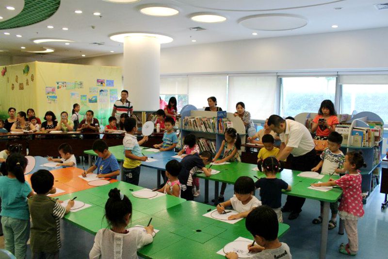 7月18日上午10:00,“小桔灯童萌绘”的活动在金陵图书馆少儿活动室准时开始了。此次活动分为两项内容,第一项内容是绘本分享《我的幸运一天》,第二项内容是艺术体验蜡笔画创作。