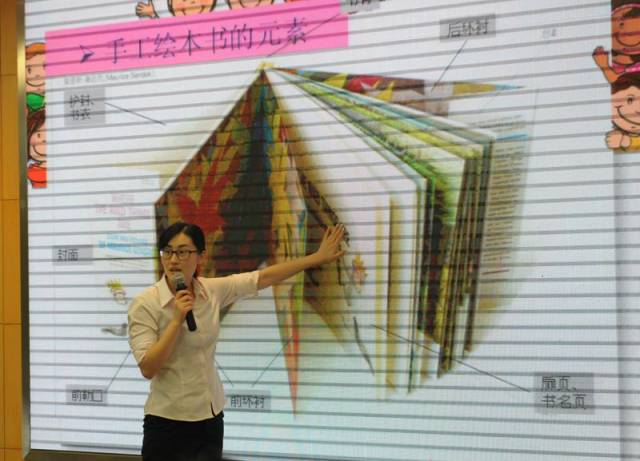 活动主要概略介绍了手工绘本的主题、内容、形式及制作过程。主要有:通过四页书、折叠书、方形书、蒙古包书等手工绘本的展示,引发小朋友的兴趣爱好;通过撕了一角的纸引发小朋友想象力,进行创意大考验;通过封面、封底装饰的不同材料,展示立体镂空效果;根据内页的变化,向小朋友们演示了什么是翻翻书、转转书和立体效果书;最后,还通过PPT和现场教学的组合形式,教会小朋友如何应用一正一反故事线、5W1H等写法编写绘本故事。