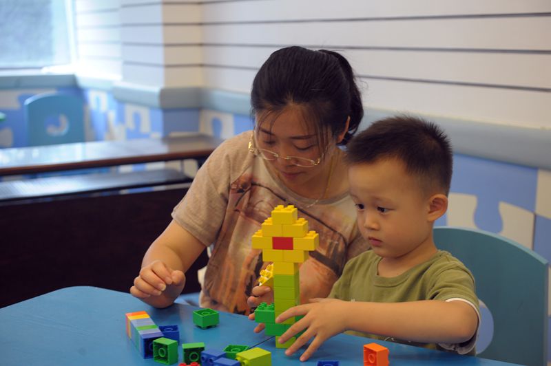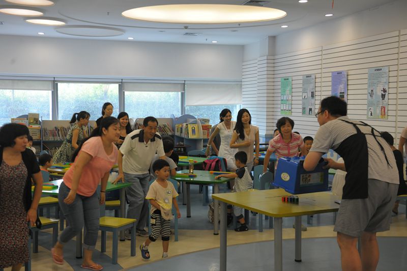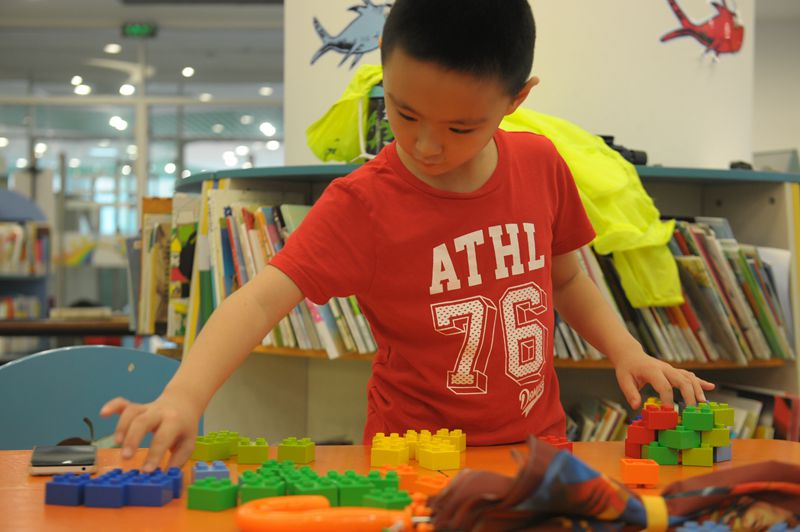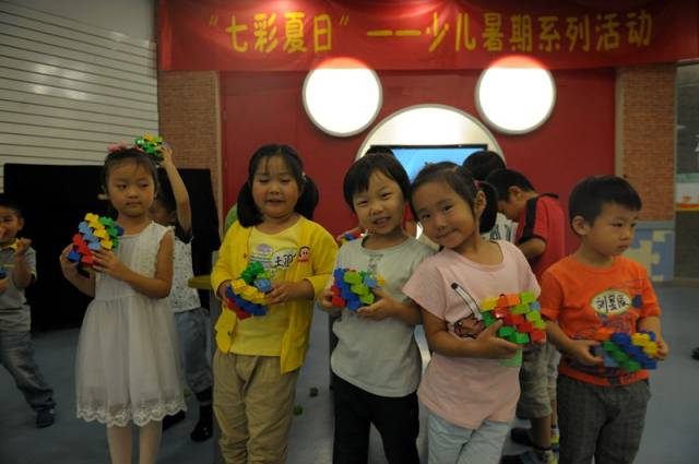7月24日上午,金陵图书馆“七彩夏日”少儿暑期夏令营之蓝精灵手工坊在少儿活动室举办超级模仿秀积木小竞赛活动,18个家庭参加了活动。爱心、草莓、花朵……家长观察指挥、小朋友动手搭建,由易至难,不仅锻炼了小朋友的动手能力,还增进了亲子之间的互动沟通。