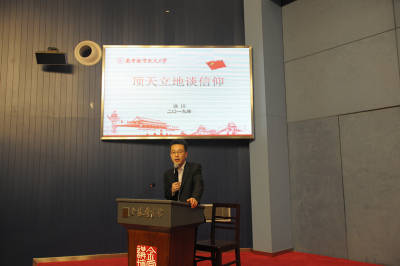雄浑的《国际歌》在天地奏响,鲜艳的红旗在宇内飘扬。曾经我们百废待兴,斗志昂扬;今天我们民族腾飞,国家富强。五千载人间沧桑,七十年苦难辉煌,那些化为英灵的先辈、那些奋斗拼搏的人们,从各行各业、荒凉边陲、城市乡村、沿海内陆,汇成洪流,组成方阵,从过去延伸到未来,从人间延伸到天堂。是什么,让中华儿女为国奉献,抛头洒血;是什么,让炎黄子孙克己勤勉,无私自强?孟子曰:贫贱不能移,富贵不能淫,威武不能屈。此之谓信仰。翌日上午9:30,南京航空航天大学、马列主义学院党支书、“网红教授”徐川老师做客“金图讲坛”,以“与信仰对话——庆祝新中国成立70华诞”,与广大学员行于大道,分享信仰的力量。
