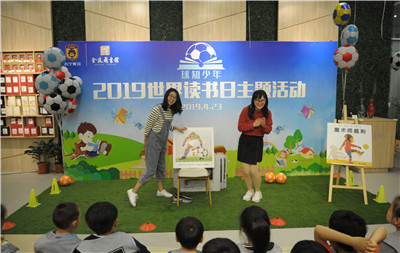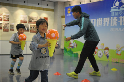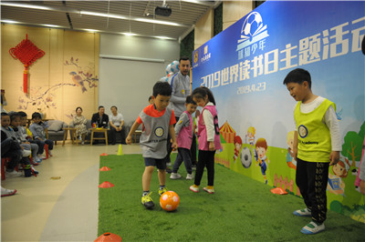 今年的4月23日是第24个世界阅读日,当天下午,由金陵图书馆与江苏苏宁足球俱乐部联合举办的“球知少年”2019世界读书日主题活动在金陵图书馆动静结合、热力开展。活动分“球知少年爱阅读”和“球知少年爱运动”两个板块,先由馆员汪然和张婕领衔导读有关足球的励志绘本,再由国际米兰意大利籍青训教练Bruno带领孩子还原绘本中的踢球场景,并开展多种足球训练游戏。35名幼儿园大班的孩子到场参加,通过绘本阅读和足球运动的结合,孩子们既培养了阅读兴趣,还挖掘出运动天赋,锻炼了他们的学习专注力与协作力,深受家长和孩子们的喜爱和认可,取得了良好的互动效果。
