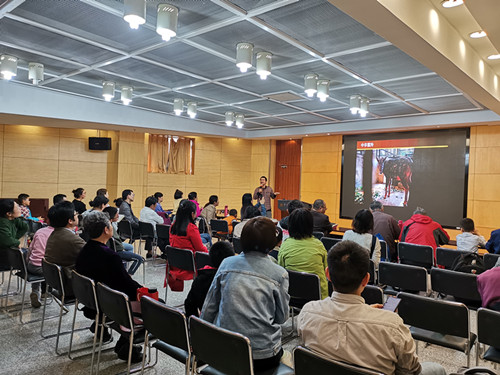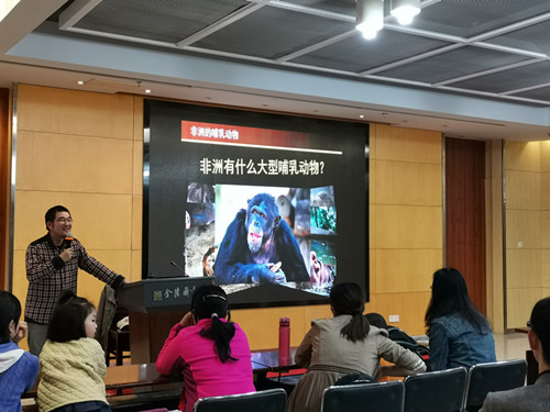 南京觅野趣自然学堂首席科普讲师陈之旸先生,童年时就爱上了当时的南京玄武湖动物园,长大后在美国留学期间担任西雅图林地公园动物园热带亚洲馆讲解组组长,回国后成为了红山动物园志愿者,并多次组织科普活动,是《博物》杂志撰稿人。讲座一开始,陈之旸老师讲述了哺乳动物的胎生、恒温、哺乳等特性,并介绍了一些大家所熟知的哺乳动物,如非洲象、长颈鹿、黑猩猩、河马等,但问起哪些属于中国本土的哺乳动物时,回答者寥寥无几,就是有人回答,也是错误百出,看来今天的科普讲座很有意义。