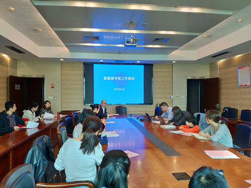 本次家庭图书馆项目信息管理系统升级培训由金图尹士亮副馆长主持,南京共享图书馆项目的技术合作方代表也到会负责进行技术培训。