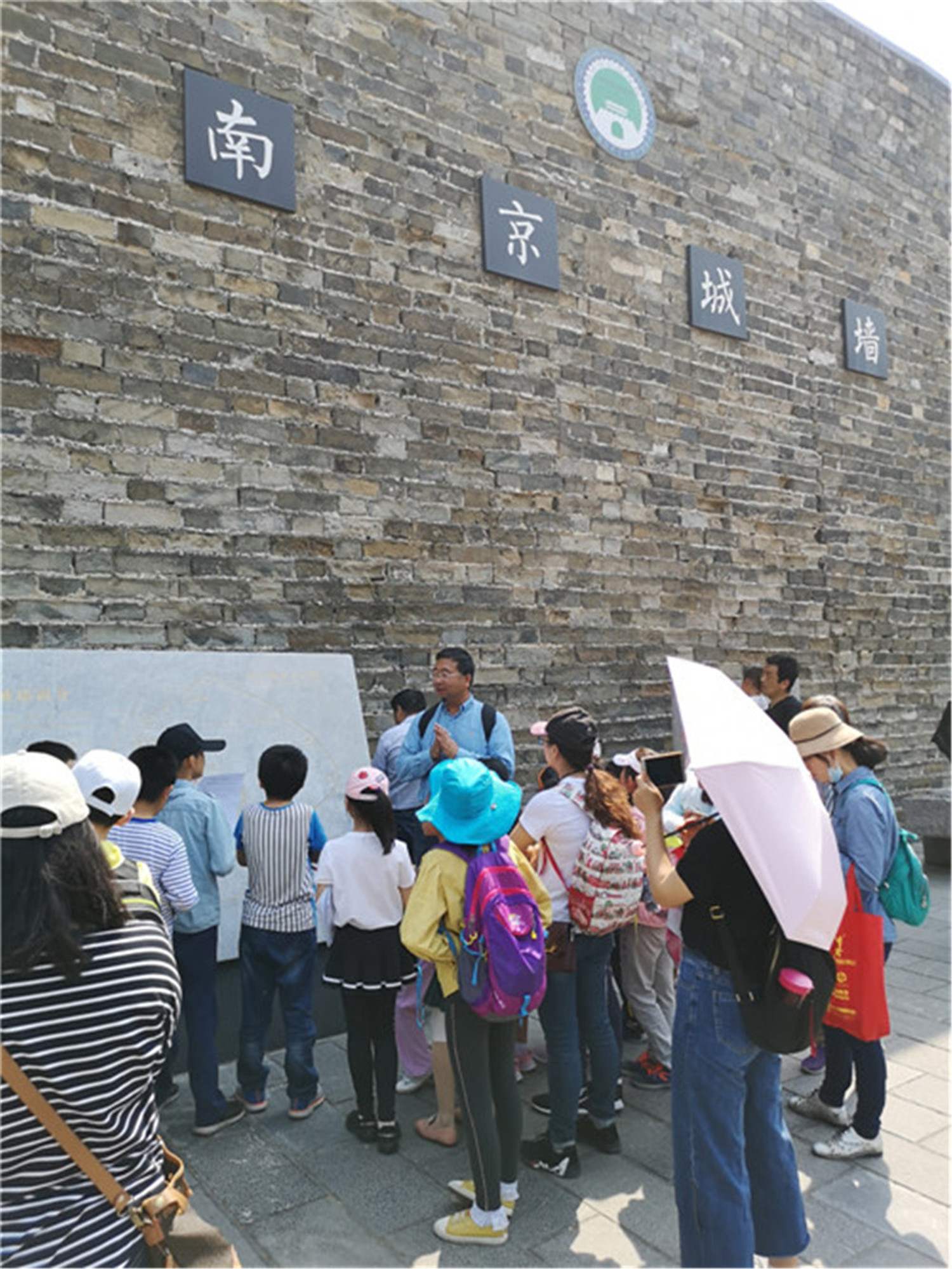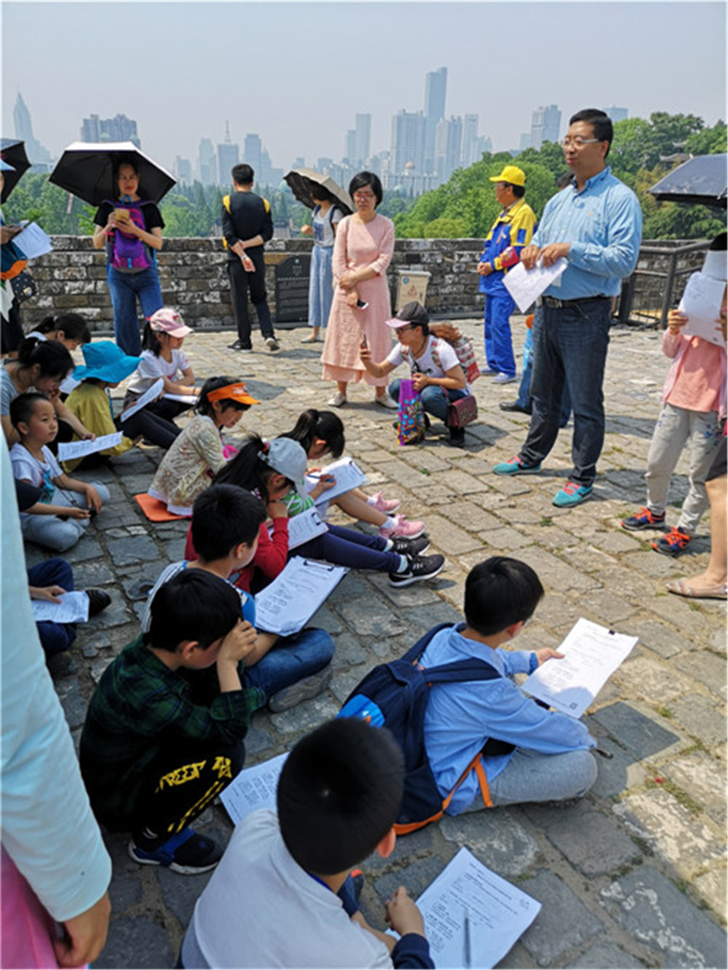 然后,仁和老师带领同学们登临城上,东眺钟山龙蟠苍翠,山色空明;北赏玄武十里烟柳,烟波浩淼;南观九华塔影婆娑,宝塔高耸;西览鸡鸣黄墙青瓦,古刹钟声荡气回肠。
