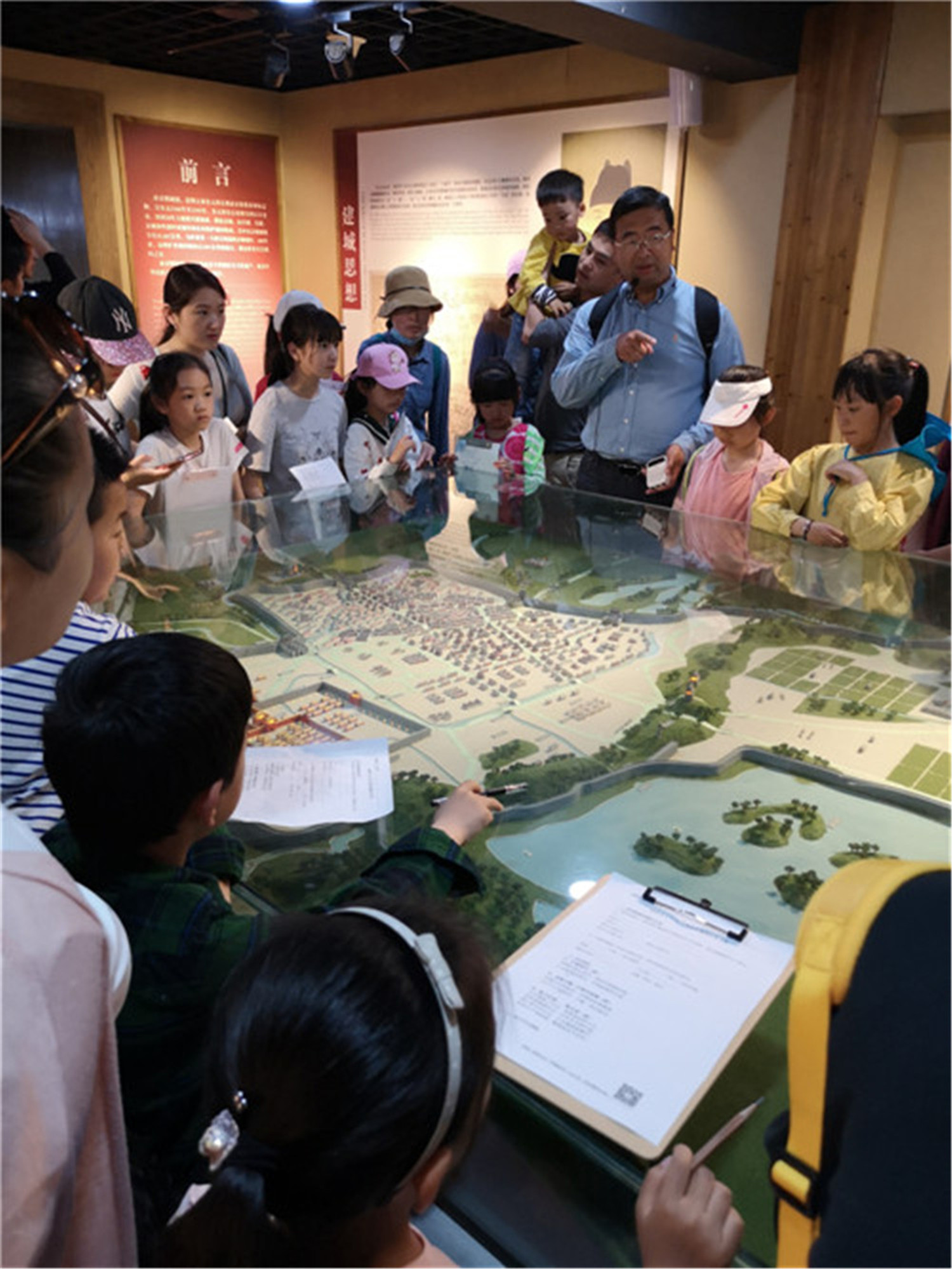紧接着同学们来到台城展厅,展厅里有一个非常完整的南京城模型图,孩子们围着一圈找城门,边找边记录——太平门、仪凤门、金川门、三山门、神策门。。。这一圈转下来,城门真是不少哦!你知道朱元璋当时为什么把南京城修成这个样子吗?因为是参照当时的天象,修成了北斗七星和南斗六星的形状。你知道聚宝门现在叫什么吗?朝阳门又是现在的哪个门? 你知道城砖是怎么烧制的?哪里烧制的城砖最坚固?通过一通猜测、仁和老师的一番讲解,孩子们又涨见识啦!