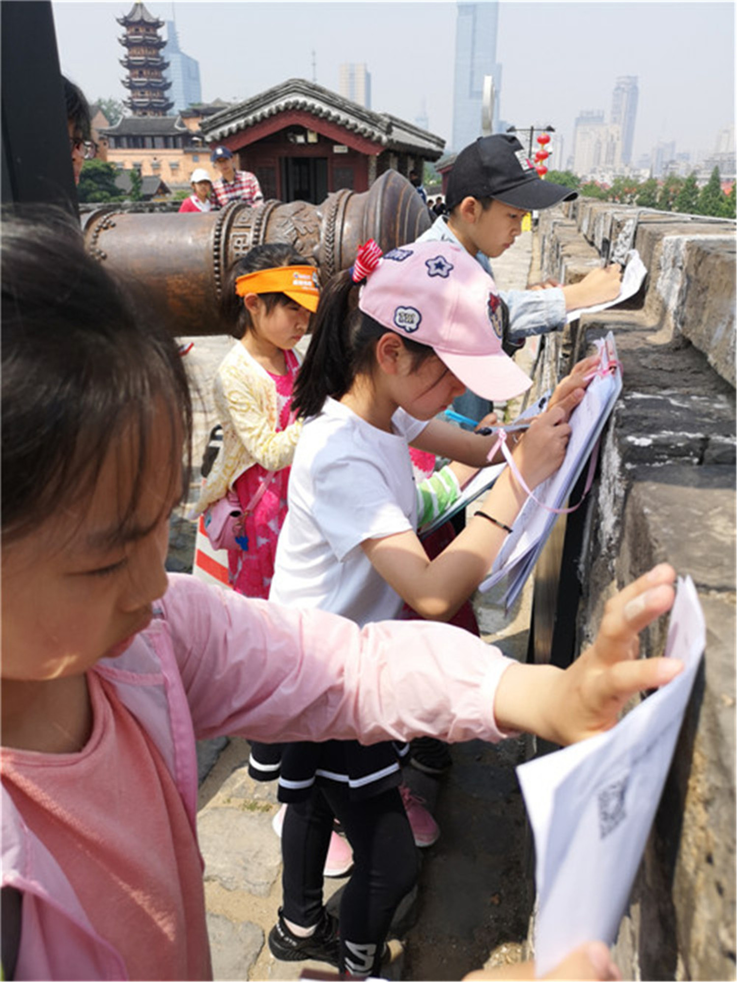 走上明城墙,仁和老师带着孩子们远观紫金山,九华山,近看鸡笼山、玄武湖、市政府的青瓦建筑,一个个历史人物、一段段曲折故事。这片台城,真是有很多风雨沧桑。