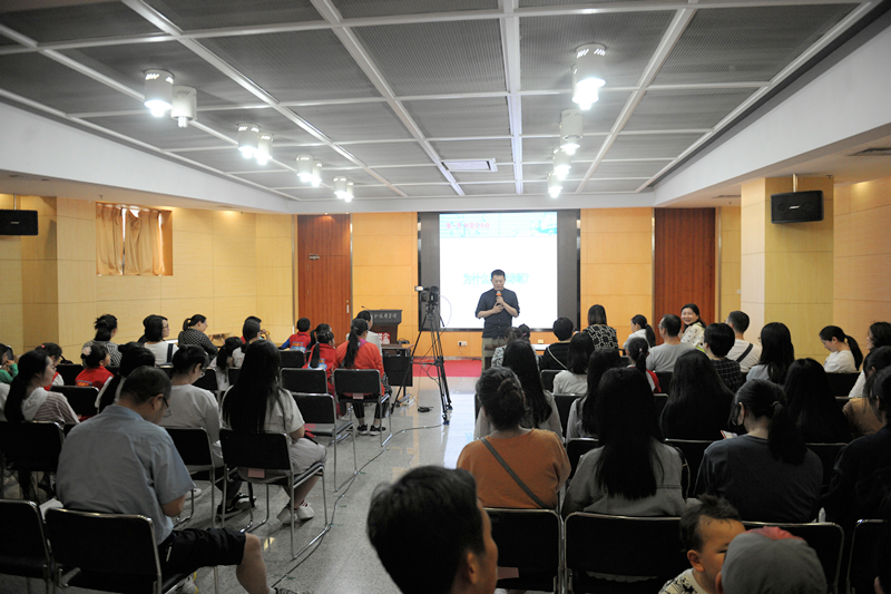 2019年5月12日下午2:00,由九三学社江苏省委员会、南京市全民阅读促进会、金陵图书馆主办,九三学社江苏省直一支社副主委、中国传媒大学南广学院播音主持艺术学院副院长易旭丹担纲主讲,以“古典诗词诵读方法——和孩子一起读诗”为题,与众多的父母、孩子,聚首金图多功能厅,白云苍苍,飞絮扬扬,仲春之际,诗意书香。