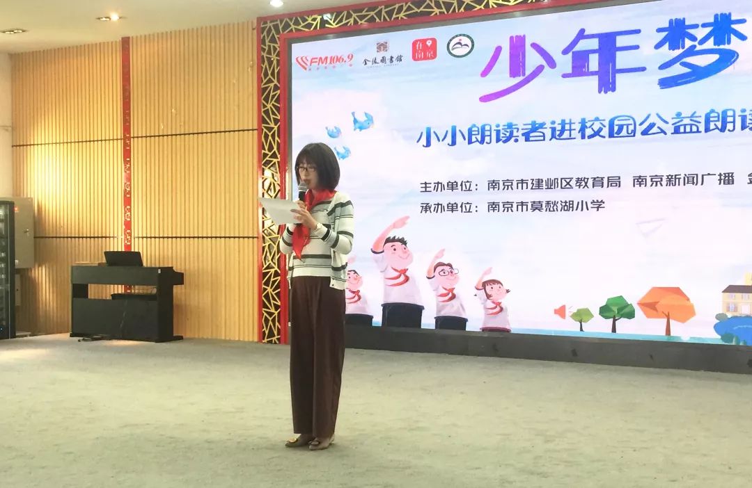 建邺区委教育工委副书记任心洁致辞。南京新闻综合广播副总监赵永晨、建邺区教育局德体卫艺科科长陈国庆、金陵图书馆文创发展部副主任周樱格、南京新闻综合广播主持人唐莹、建邺区教育关工委常务副主任唐德海、莫愁湖小学校长魏光明、莫愁湖小学书记唐燕峰,以及莫愁湖社区、水西门社区、艺苑社区领导,建邺区中小学德育中心聂载颖、莫愁湖小学副校长肖青青、莫愁湖小学副校长王娟,莫愁湖小学关工委领导出席参加了活动。随后,在孩子们活力四射的舞蹈表演下,小小朗读者朗读活动正式拉开帷幕。