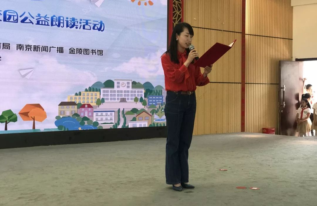 在所有小选手们朗诵完之后,南京新闻综合广播主持人唐莹为大家带来了深情的朗诵表演,她的投入感染着现场每一位观众。