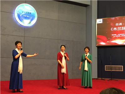 下午, 远方之声国际朗诵俱乐部、南京珍珠朗诵艺术团 、金陵好时光朗诵艺术团 、南京扬子江朗诵团、悦尔朗读社、世旗南京总会俱乐部等朗诵爱好团体在报告厅的舞台上带来了一场精彩的展演会。有古诗词朗诵《梦游天姥吟留别》、《木兰词》、《春江花月夜》,有红色篇章《脊梁》、《祖国啊,我亲爱的祖国》、《月光下的中国》,有现代诗歌《雨巷》、《人间四月天》、《等你,在雨中》,形式也很多样,从独诵到伴舞朗诵、集体朗诵等,还有孩子们的街舞秀,可以说每个团队都拿出了自己的代表篇章,百花齐放,百舸争流,用朗诵的方式进行了一次思想上的对话与交流。