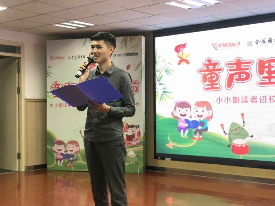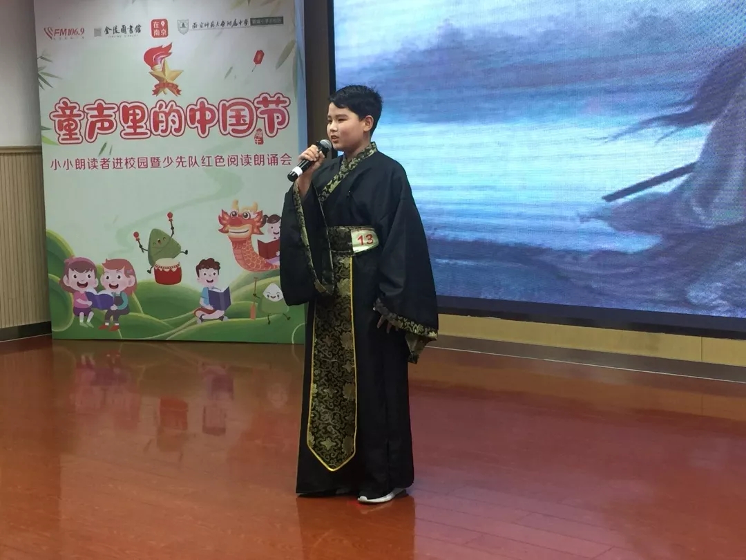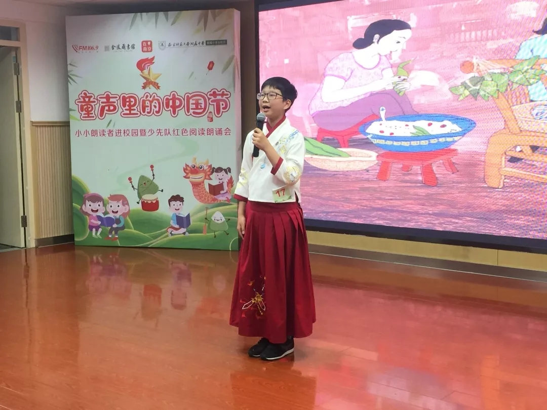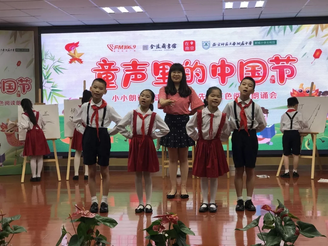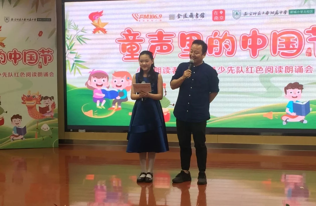 2019年6月6日下午,由南京新闻综合广播、金陵图书馆、建邺区教育局联合主办、南师附中新城小学北校区承办的“童声里的中国节”——“小小朗读者”进校园暨少先队红色阅读朗诵会在南师附中新城小学北校区举行。活动由南京新闻综合广播王鹏、新城小学北校区四(1)中队滕欣悦同学担任主持人。