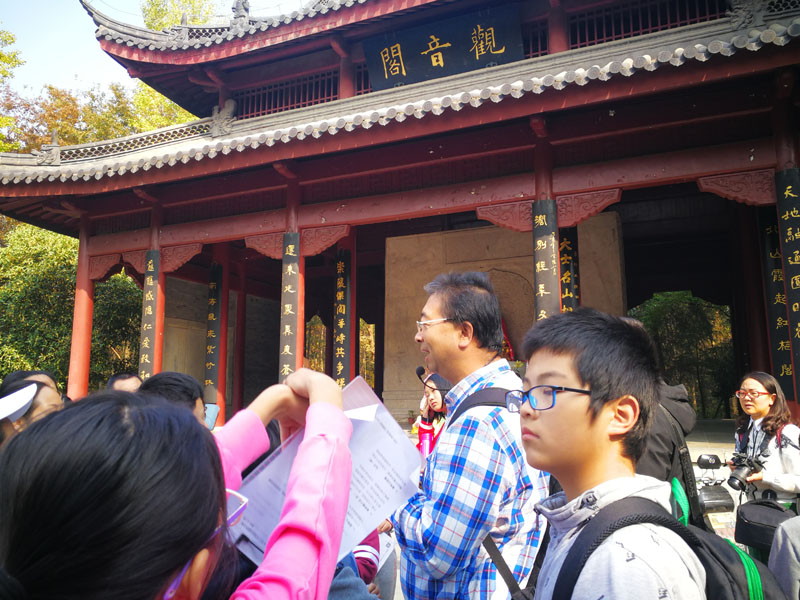 密林中,池塘边,一座碧瓦朱甍的建筑修葺在眼前,此处名曰“观音阁”,在这里,仁和老师给大家讲解了很多明代建筑的相关知识。如牌坊与牌楼显著的区别是什么?原来牌坊没有“楼”的构造,即没有斗拱和屋顶,而牌楼有屋顶,它有更大的烘托气氛。但是由于它们都是我国古代用于表彰、纪念、装饰、标识和导向的一种建筑物,而且又多建于宫苑、寺观、陵墓、祠堂、衙署和街道路口等地方,再加上长期以来老百姓对“坊”、“楼”的概念不清,所以到最后两者成为一个互通的称谓了。