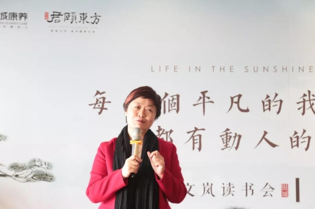 11月9日下午,在南京君颐东方国际康养社区,著名主持人文岚为社区居民带来了一场主题为“每一个平凡的我都有动人的故事”主题的读书会。