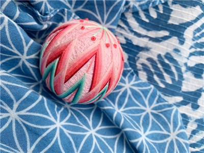 手鞠,源于中国古代的“蹴鞠”,在盛唐时传入日本,初为男子们的玩乐游戏,渐渐演变,贵族女子们用丝线在球体上做出各种美轮美奂的图案,成为闺中玩物。后手鞠普及至民间,传承1400多年,发展演变成一种独特的,结合刺绣技法与几何美学的球面艺术形式。