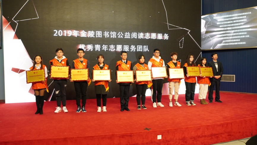 会上,共青团南京市委对2019年大型赛事赛会志愿服务工作优秀个人和集体、南京市青年志愿服务站优秀个人和集体、南京市优秀青年志愿服务个人、集体和志愿服务项目等进行了表彰。由金陵图书馆推选的十支高校志愿者团队获得“公益阅读志愿服务优秀青年志愿服务团队”荣誉称号,金陵图书馆馆员汪然获得“南京市优秀青年志愿者”称号。