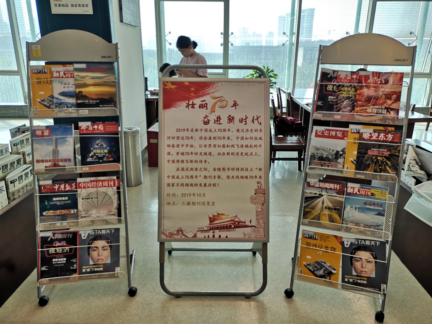 1949年10月1日, 毛泽东同志在天安门城楼上向全世界庄严宣告中华人民共和国成立。新中国的成立,标志着中华民族的浴火重生,开启了实现国家富强、民族振兴、人民幸福的伟大新征程。今年,是新中国成立70周年,金陵图书馆精心挑选出相关杂志,于10月1日起推出“壮丽70年,奋进新时代 ”——国庆主题期刊展,与读者一起领略70年来祖国不同领域的发展历程。